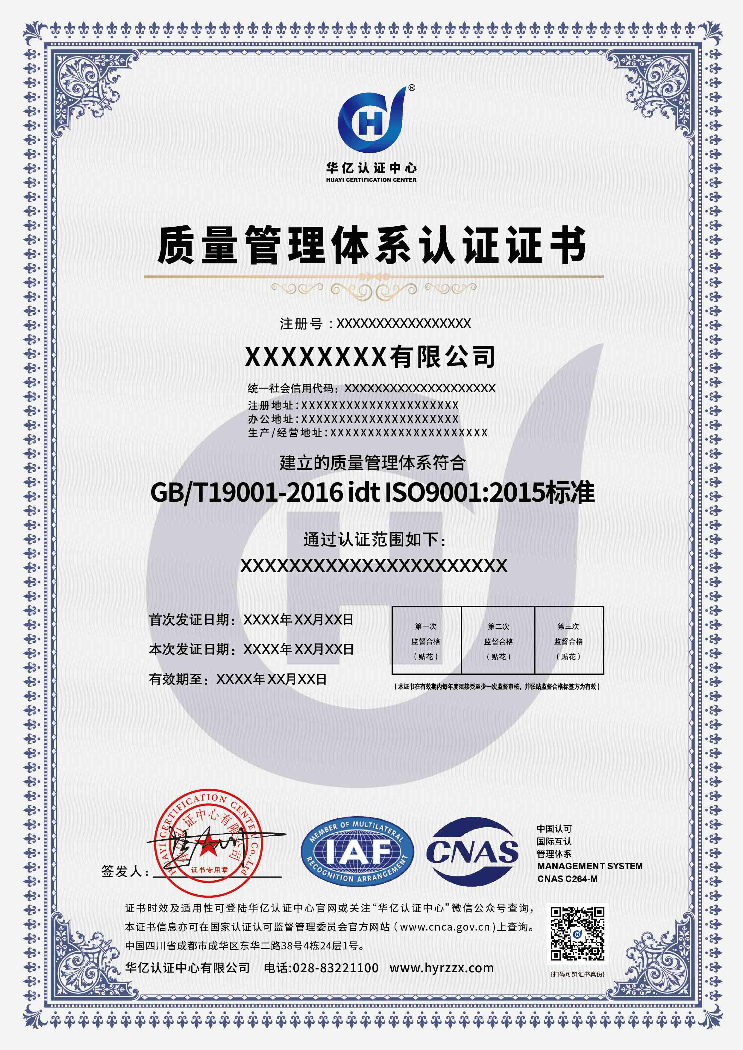 质量管理体系证书